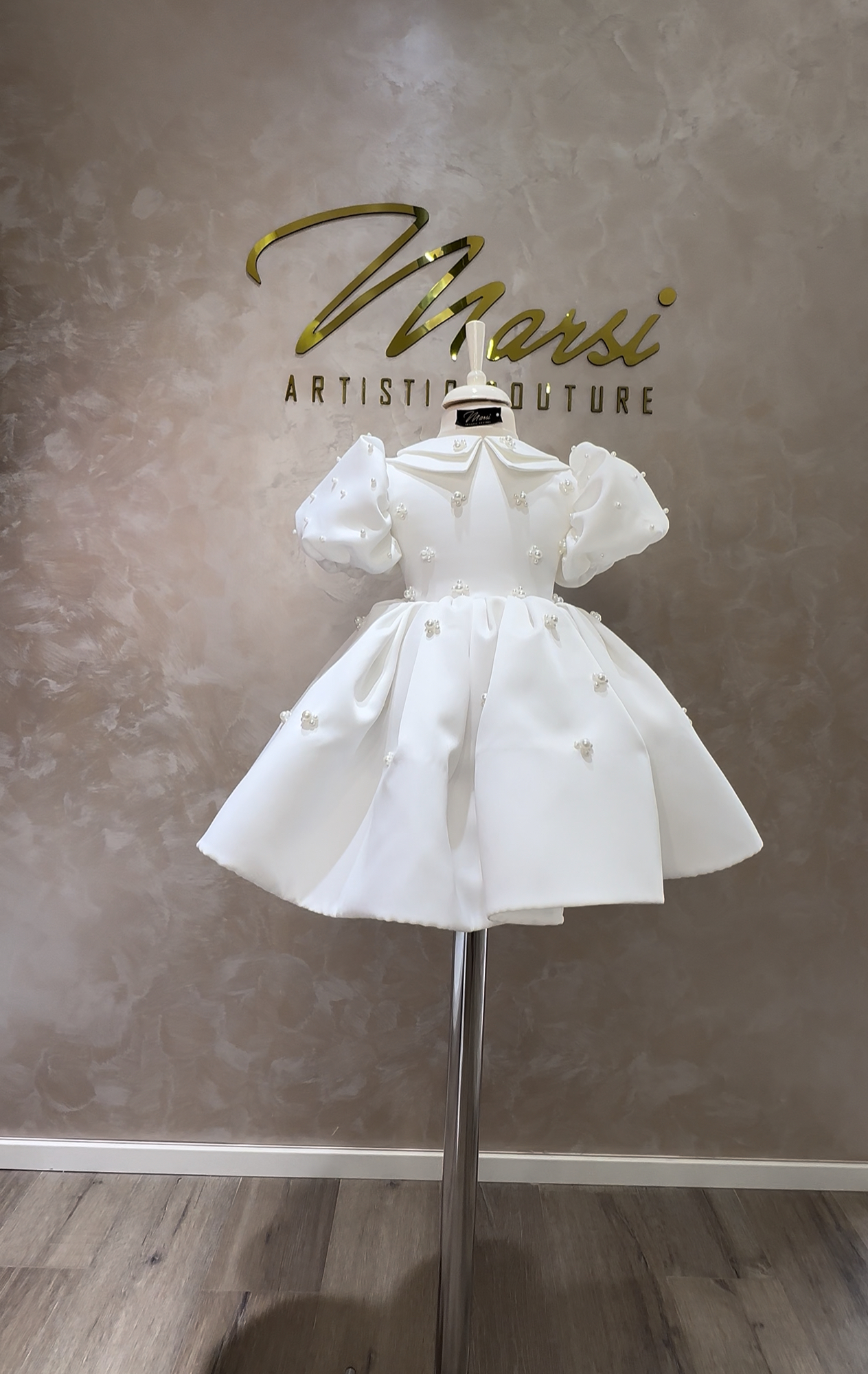 Pearl Princess Couture është një fustan i bardhë elegant për vajza, i krijuar me finesë dhe përkushtim artizanal.